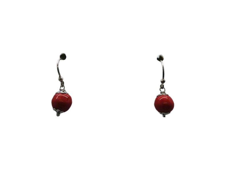 Orecchini in corallo sardo 9MM, perle di fiume e ARG925.